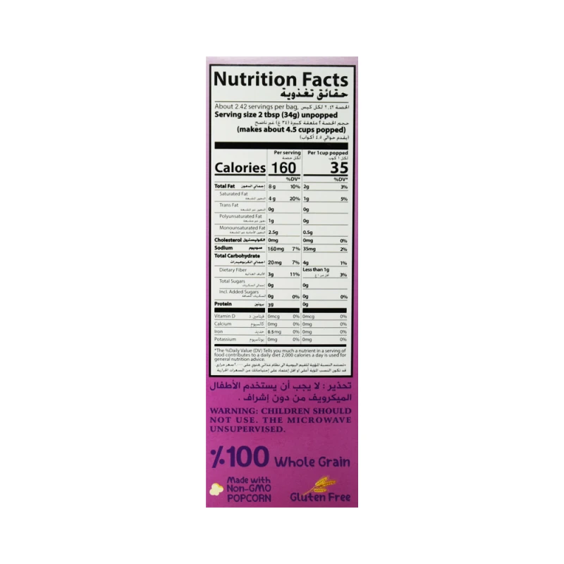 ذرة , زيت النخيل النباتي ( غير مهدرج ) ملح , نكهة الزبدة الصناعية .