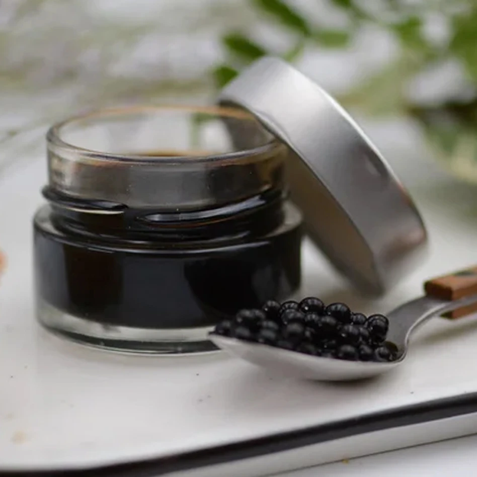 خل بلسميك مودينا PGI (لا يقل عن 80%) (عصير العنب المطهو، خل النبيذ)، ملون: كراميل عادي، مُثخّن: صمغ السليلوز، عوامل هلامية: كلوريد الكالسيوم، ألجينات الصوديوم، مادة حافظة: سوربات البوتاسيوم.