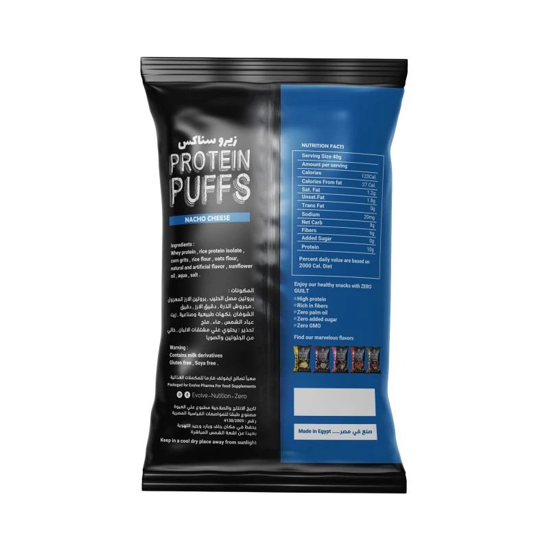 ايفولف زيرو شيبس بروتين 40 غ جبنة الناتشو