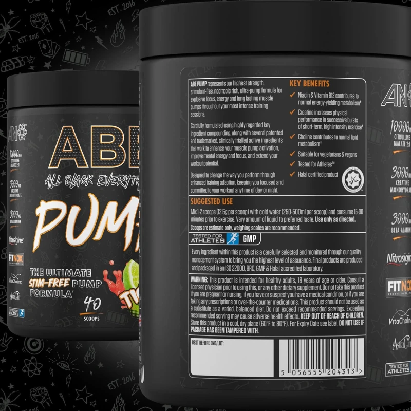 سيترولين مالات 2: 1، بيتا ألانين، كرياتين مونوهيدرات، تورين، أرجينين سيليكات إينوزيتول (في صورة Nitrosigine®)، منكهات، حمض (حمض الستريك)، بيكربونات الصوديوم، بيطرطرات الكولين (في صورة VitaCholineTM)، عوامل مضادة للتكتل (ثاني أكسيد السيليكون، الكالسيوم سيليكات)، ملح الهيمالايا الوردي، FitNoxTM (مستخلص المورينغا أوليفيرا، مستخلص بونيكا جراناتوم، مستخلص كايمبفيريا بارفيفلورا)، اللون (الشمندر الأحمر)، مُحلي (سوكرالوز)، نياسيناميد، AstraGin® (مستخلص جذر قتاد الغشائي ومستخلص جذر باناكس نوتوجينسينج)، فيتامين ب12.