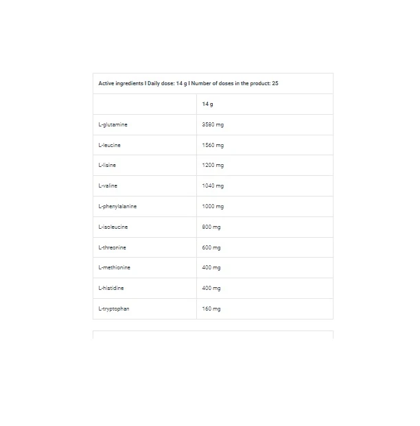 أثناء تجديد EAA Zero، لم نسعى فقط إلى الحصول على النسب الصحيحة، ولكننا نهدف أيضًا إلى إنشاء منتج معقد. ونتيجة لذلك، يحتوي المنتج الآن على جميع الأحماض الأمينية الأساسية ومن خلال إضافة الجلوتامين قمنا بزيادة كمية الأحماض الأمينية اللازمة لبناء العضلات.