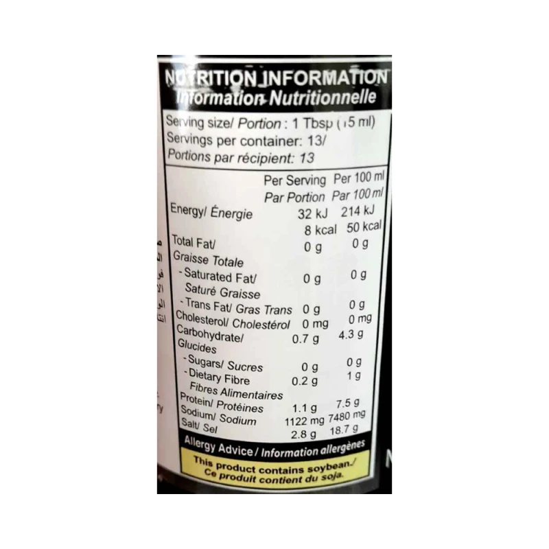 مناسب للاستخدام مع المأكولات البحرية وتوابل اللحوم وأطباق الووك. لا تحتوي على الغلوتين.
