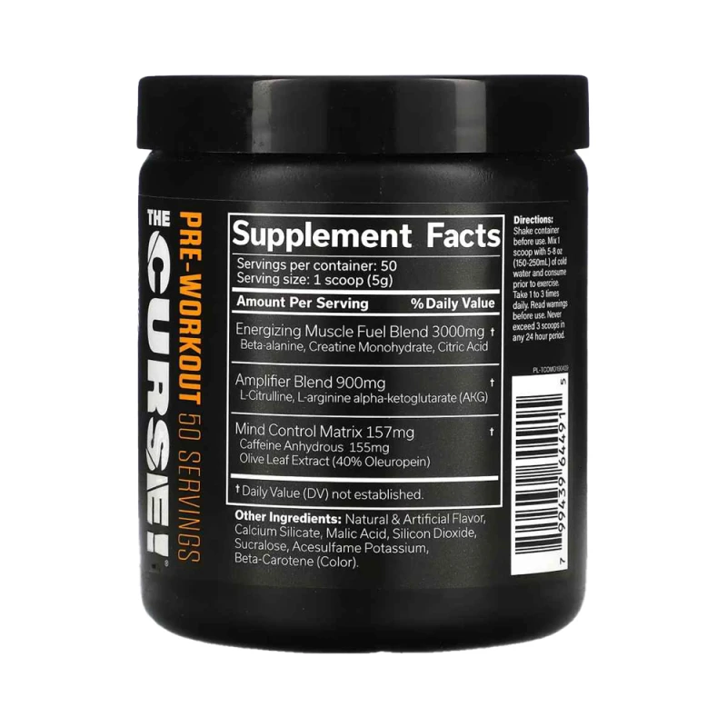 أطلق العنان لإمكانياتك الحقيقية مع القوة الخارقة للطبيعة في The Curse!®، مزيج تآزري غير عادي من المنشطات يوفر تركيزًا عقليًا شديدًا وطاقة بدنية خالصة وقوة وتحملًا من شأنه أن يذهل عقلك. هذا هو التمرين النهائي قبل التمرين. خطوة إلى الظلام. فتح باب الجحيم!