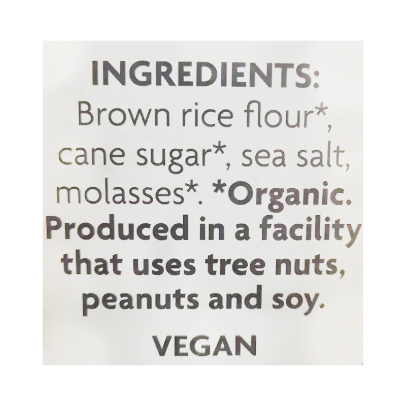 دقيق الأرز البني * ، قصب السكر * ، ملح البحر ، دبس السكر *. *عضوي.