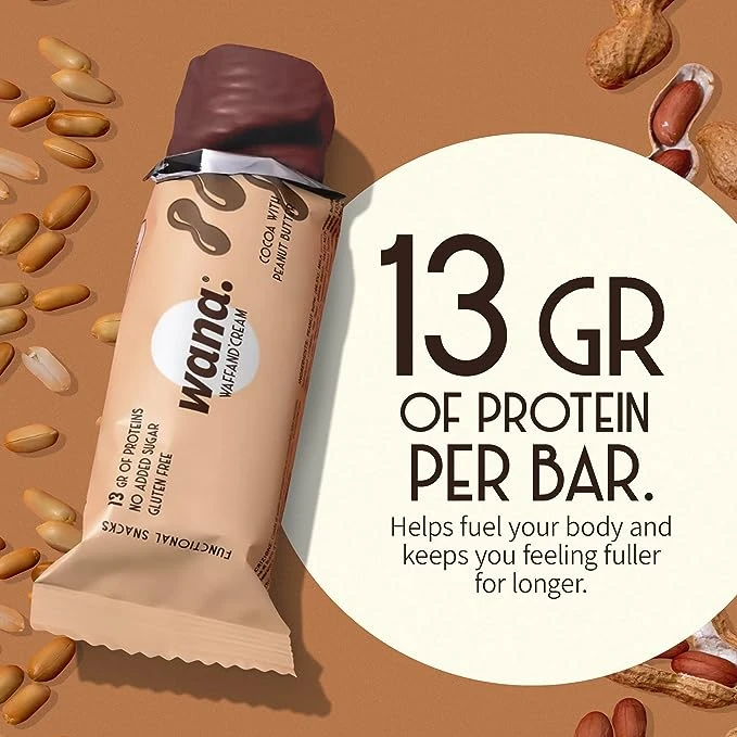 مثالية للأشخاص أثناء التنقل - تناول الطعام على قضبان الإفطار الغنية بالبروتين سواء كنت تعمل أو تسافر أو ترغب فقط في إرضاء أسنانك الحلوة. Wana Waffand’Cream للوجبات الخفيفة تقدم أيضًا تمرينًا ممتازًا قبل التمرين أو بعد التمرين.