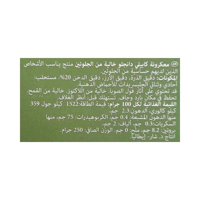 دقيق الذرة، دقيق الأرز، دقيق الدخن 20%، مستحلب: أحادي وثنائي الغليسريدات للأحماض الدهنية.قد يحتوي على الصويا.خالٍ من اللاكتوز.خالٍ من القمح.
