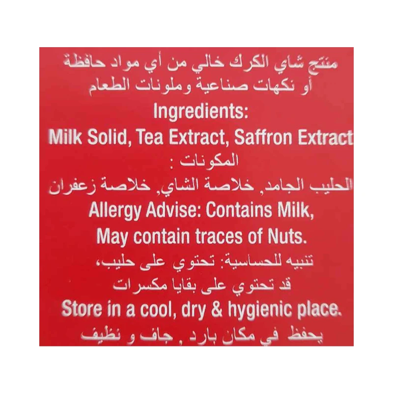 مكونات : حليب جامد ، خلاصة الشاي ، خلاصة زعفران