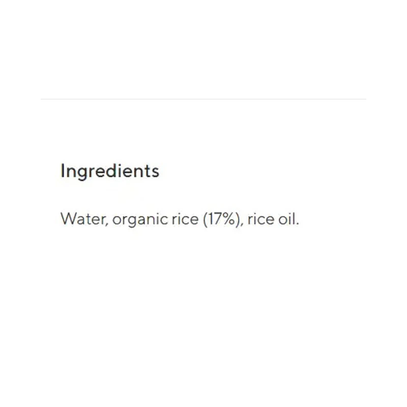 ماء، أرز عضوي (17%)، زيت الأرز.