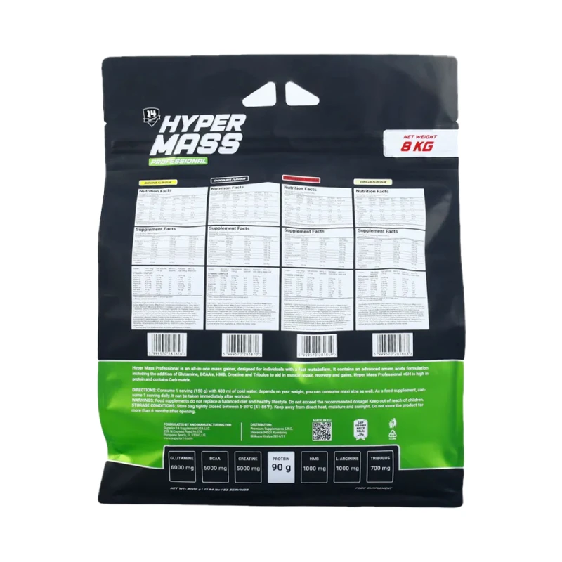 يمكن أن يساعد Hyper Mass Professional عضلاتك على النمو، وذلك بفضل مصفوفة الكربوهيدرات متعددة المصادر والمحتوى العالي من البروتين وإضافة الأحماض الأمينية بنسبة مثالية 2:1:1 للمساعدة في امتصاص البروتين. تمت إضافة الكرياتين أيضًا للمساعدة في ملء العضلات بالماء ودفع المزيد من النمو، جنبًا إلى جنب مع مركب فيتامين تم اختياره بعناية لدعم قدرة جسمك على استخدام البروتين والكربوهيدرات للحصول على الطاقة وكتلة العضلات الخالية من الدهون.