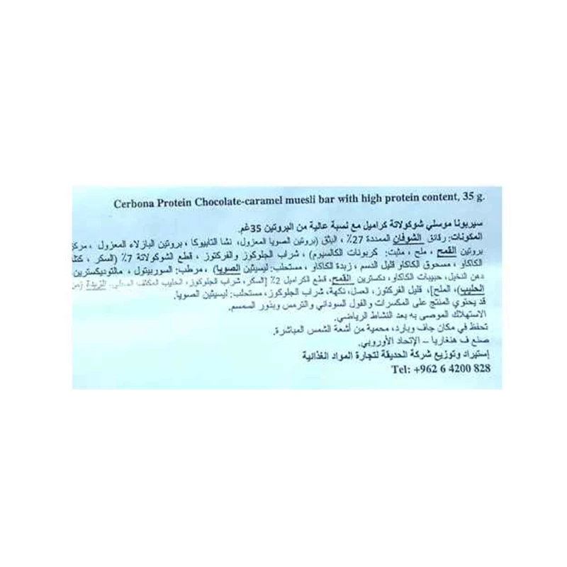المكونات: رقائق شوفان ملفوفة 27%، اكسترودات (بروتين الصويا المعزول، نشا التابيوكا، بروتين البازلاء المعزول، مركز بروتين القمح، ملح، مثبت: كربونات الكالسيوم)، شراب الجلوكوز والفركتوز، قطع الشوكولاتة 7% (سكر، كتلة الكاكاو، قليل الدسم). مسحوق الكاكاو، زبدة الكاكاو، مستحلب: ليسيثين الصويا)، مرطب: السوربيتول، مالتوديكسترين، دهن النخيل، حبيبات الكاكاو، دكسترين القمح، قطع الكراميل 2٪ [سكر، شراب الجلوكوز، حليب مكثف محلى، زبدة (من الحليب)، ملح]، أوليجوفركتوز ، عسل، منكهات، شراب الجلوكوز، مستحلب: ليسيثين الصويا.