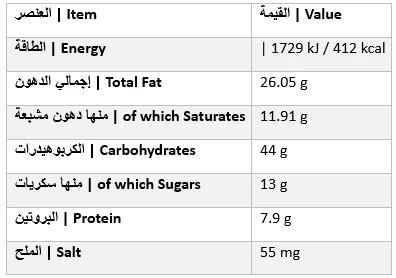 قد يحتوي على آثار من البندق، جوز البيكان، الفول السوداني، الفستق الحلبي، وأنواع أخرى من المكسرات.