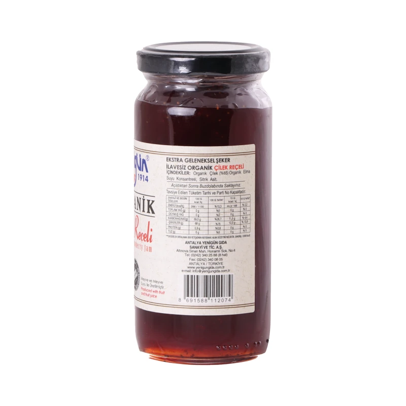 المكونات فراولة عضوية 65%مركز عصير التفاح ومنظم حموضو (حمض الستريك )