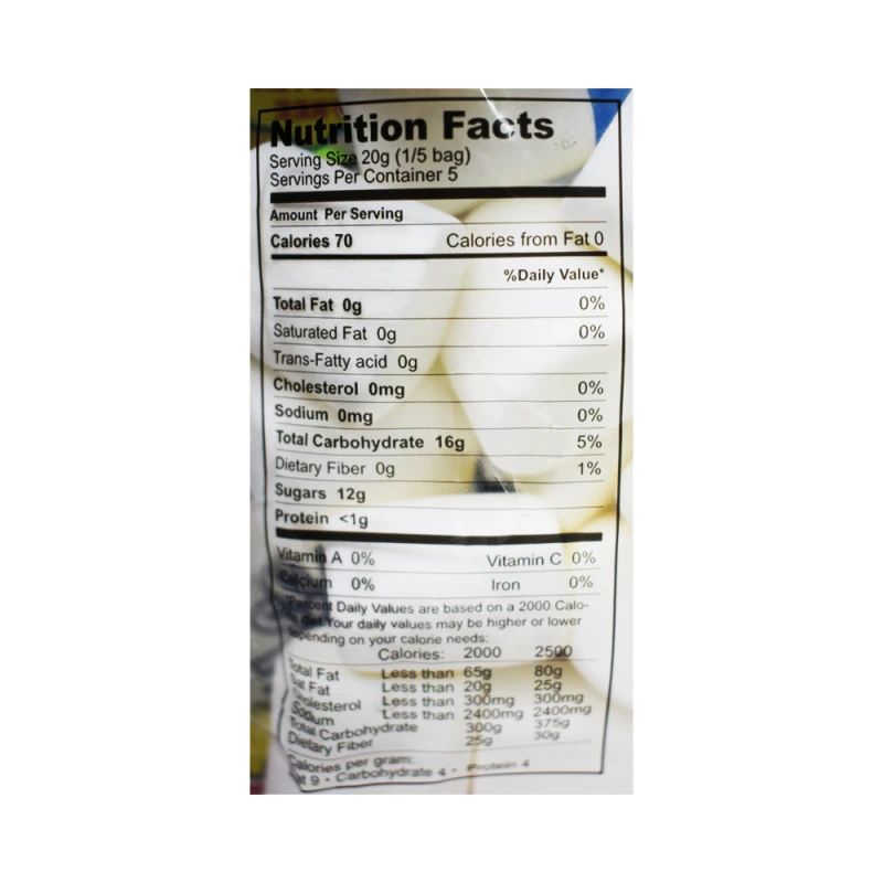 سكر ، شراب الذرة ، سكر عنب ، جيلاتين بقري حلال ، نشاء الذرة ، نكهة غذائية فانيليا ،