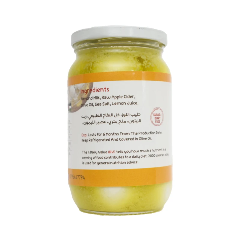 حليب اللوز , خل التفاح الطبيعي , زيت الزيتون , ملح بحري , عصير الليمون