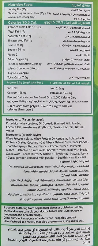 ايفولف زيرو بروتين بار بستاشيو 50غ
