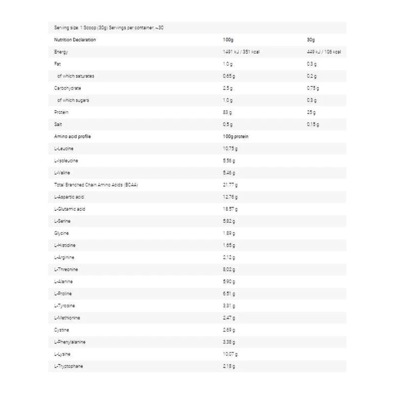 القيمة الغذائية: 25 جرام بروتين، 5 جرام BCAA.