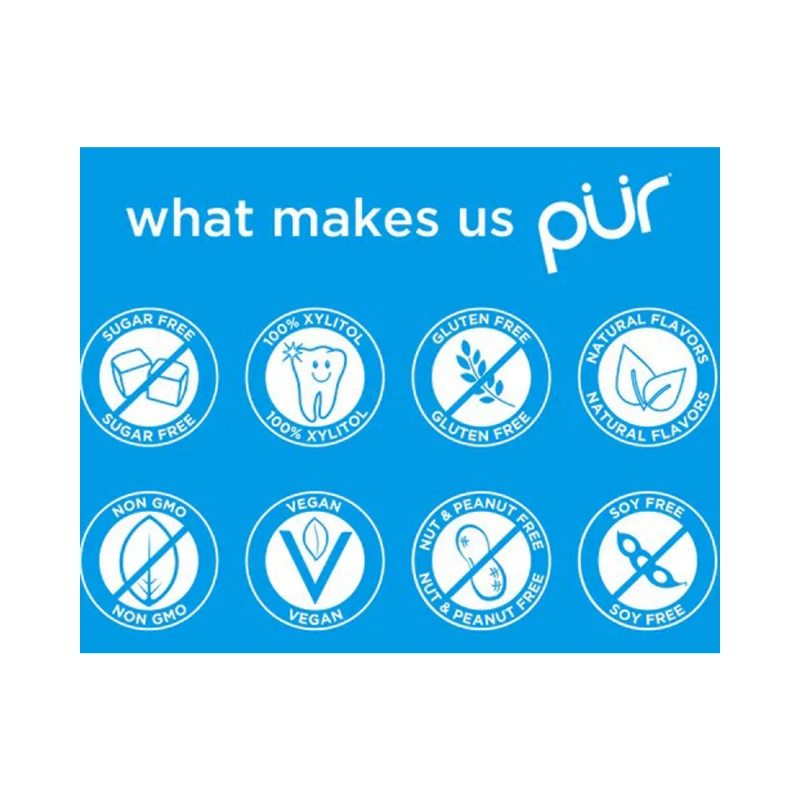 زيليتول، قاعدة علكة، صمغ عربي، نكهات طبيعية، غليسرول، شمع الكارنوبا، توكوفيرول. (الاستهلاك المفرط قد يؤدي إلى مفعول ملين).