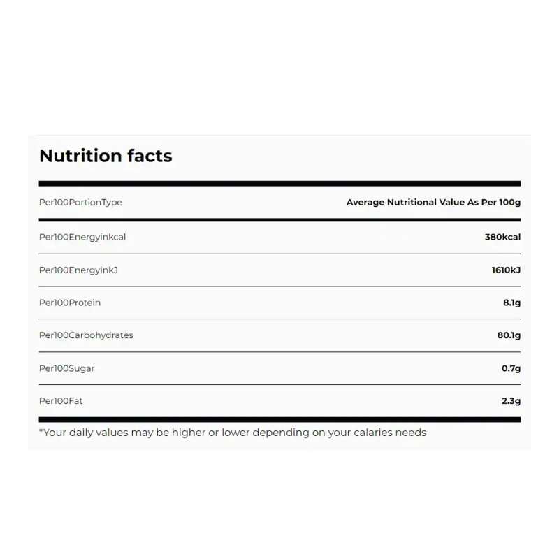 متوسط القيمة الغذائية لكل 100 جرام