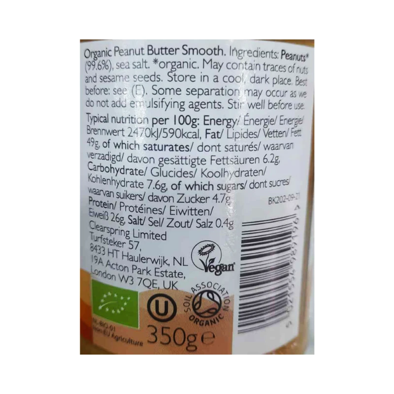 زبدة الفول السوداني العضوية من Clearspring