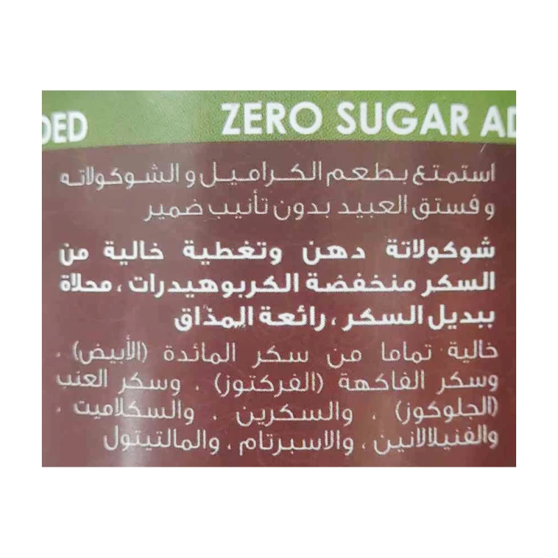 المكونات: محلي لايت آند سويت ( إريثريتول ، سكرلوز ) إنولين ، زيت نباتي ، بودرة الحليب ، بروتين الحليب، بودرة الكاكاو ، معجونة الفول السوداني، ليسيثين الصويا ، نكهة الكرميل ، فانيلا .