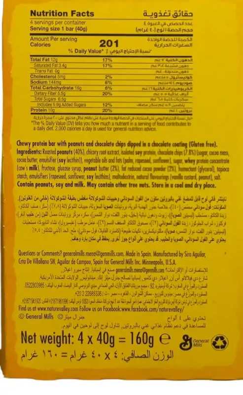 نايتشر فالي بروتين بار بالفول السوداني و رقائق الشوكولاتة الشوكولاته 40 غ