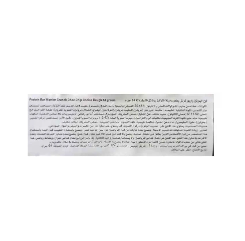 واريور 'كرانش' بروتين بار - عجينة كوكيز برقائق الشوكولاتة 64 جم