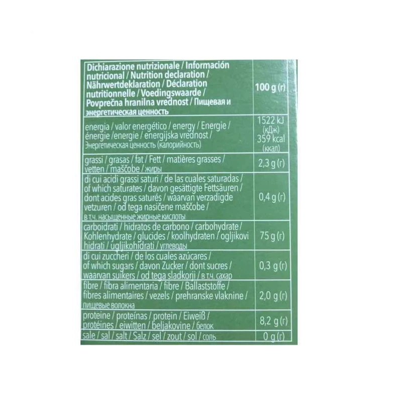 دقيق الذرة، دقيق الأرز، دقيق الدخن 20%، مستحلب: أحادي وثنائي الغليسريدات للأحماض الدهنية.قد يحتوي على الصويا.خالٍ من اللاكتوز.خالٍ من القمح.